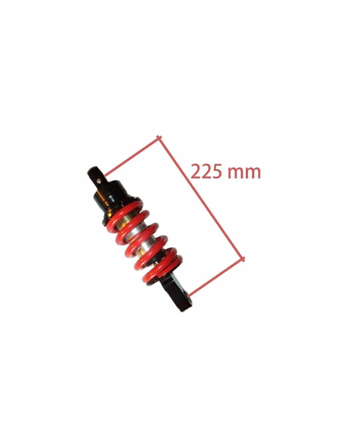 Amortiguador DNM completo de 225mm para varios modelos de miniMoto GP. Adaptable para miniCross, dirtBike o pitBike