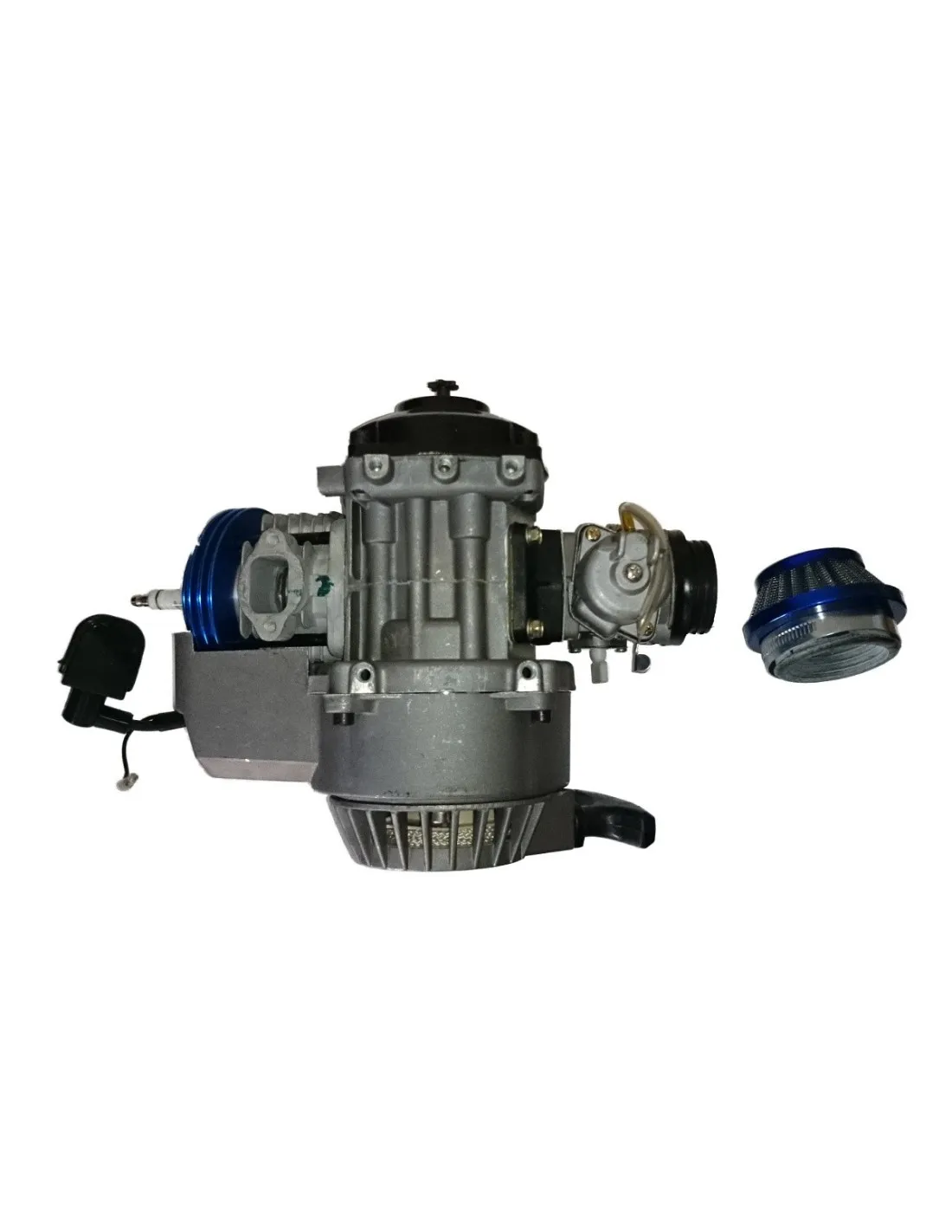 El motor de 49cc semi-potenciado es una opción utilizada en pocketbikes, miniquads infantiles y minicross. Es un motor de dos tiempos refrigerado por aire que viene equipado con características adicionales para mejorar su rendimiento con una mayor potencia, velocidad y fiabilidad.