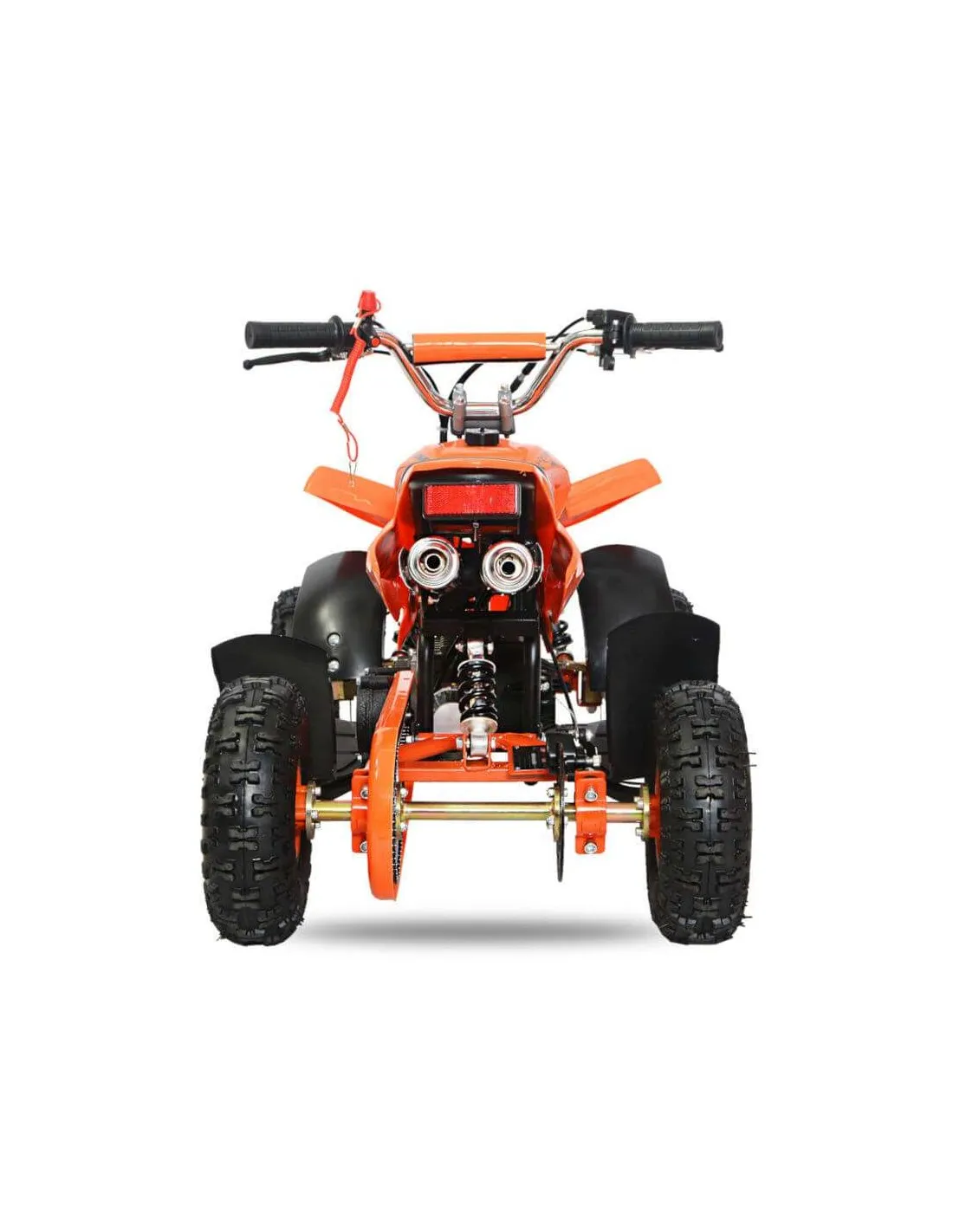 El Quad infantil lleva un motor 49cc de 2 tiempos refrigerado por aire. Su conducción es muy cómoda ya que tiene triple amortiguación y un suave recorrido el manillar de dirección permitiendo acelerar con el gatillo mientras se esta tomando una curva.