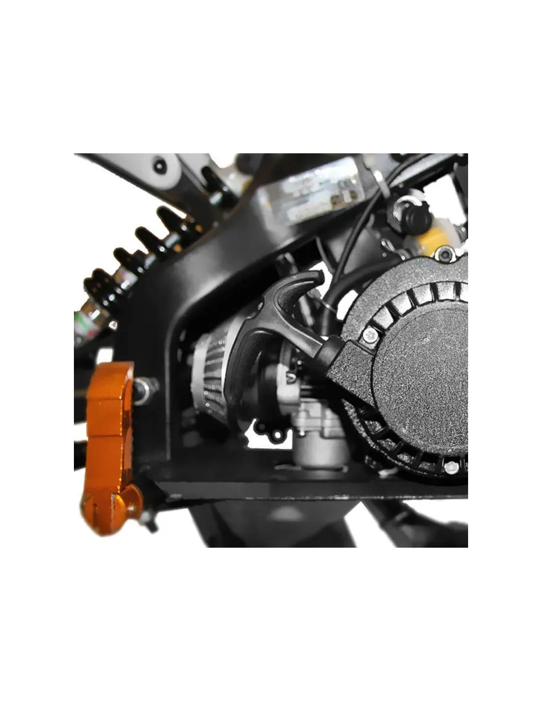 La miniCross Apollo E-Start destaca por tener encendido eléctrico. Estas miniMotos de cross desarrollan una potencia de 2,5 KW, unos 3,5 CV. El sistema de frenado de estas motos infantiles es mediente freno deportivo de disco delantero y también trasero. Montan un excelente amortiguador trasero y una horquilla invertida delantera ideal para dar saltos encima de esta miniMoto de cross infantil de campo. En la moto de cross Apollo E-Start de Nitro Motors® se puede ver como el chasis esta reforzado gracias a sus soldaduras de mayor calidad. Ademas esta miniCross dispone de un tubo de escape tipo cross, junto con otros componentes adicionales que en estas miniMotos de cross se han mejorado, como varios acabados en aluminio como el tubo de escape o el tirador de arranque. Otra mejora se encuentra en las estriberas, mejorado estética y funcionalidad por un tratamiento anti-oxido.