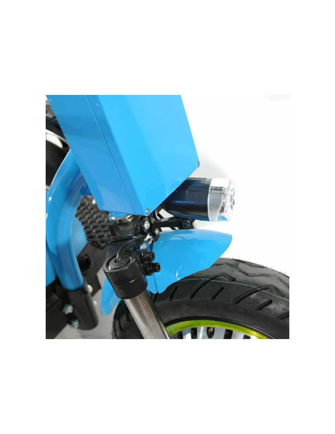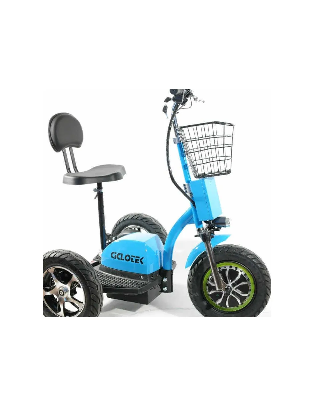 Incorpora suspensión trasera de muelle y horquilla delantera, marcha atrás, freno de tambor, bocina, luz delantera, cesta y certificación de la CE